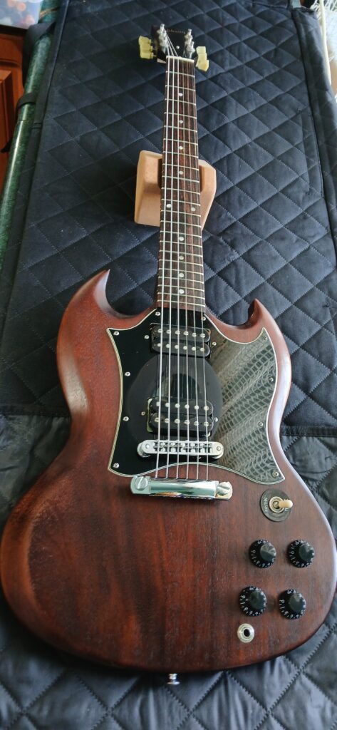 Gdy zaczynałem przygodę z muzyką, dostęp do leworęcznych instrumentów był bardzo utrudniony, więc żeby móc grać na gitarze, postanowiłem zakupić praworęczną gitarę typu SG i dostosować ją do moich potrzeb. Krótko mówiąc przerobiłem ją na gitarę leworęczną. Przeniosłem potencjometry na drugą stronę korpusu, zmieniłem kąt ustawienia mostka, żeby gitara stroiła w menzurze oraz wymieniłem siodełko przy główce. Tak się wszystko zaczęło…